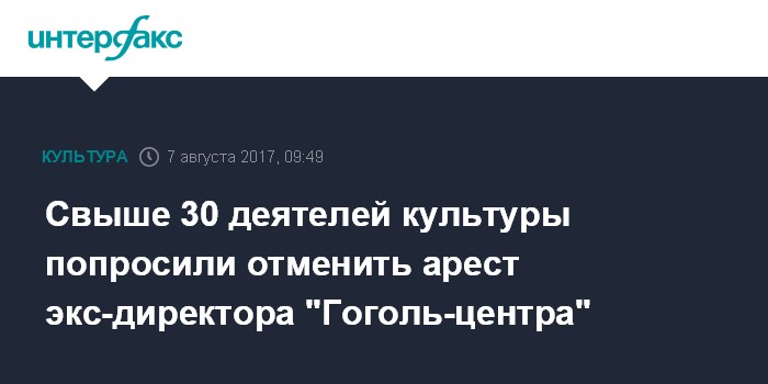 Свыше 30 деятелей культуры попросили отменить арест экс-директора "Гоголь-центра"
