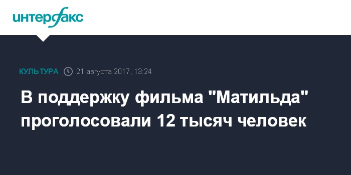 Москва. 21 августа. INTERFAX.RU - Почти 12 тысяч человек проголосовали за фильм "Матильда" Алексея Учителя на созданном в поддержку ленты сайте.