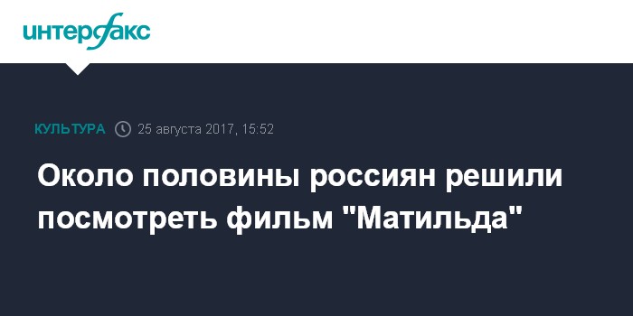 Москва. 25 августа. INTERFAX.RU - Посмотреть фильм Алексея Учителя "Матильда" о взаимоотношениях будущего императора Николая II и балерины Матильды Кшесинской собираются 47% россиян, не планируют этого делать 37%, а 16% пока не приняли для себя решения, следует из результатов опроса фонда "Общественное мнение".
