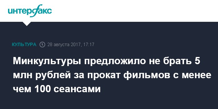 Минкультуры предложило не брать 5 млн рублей за прокат фильмов с менее чем 100 сеансами