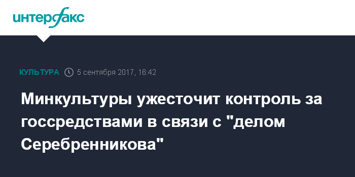 Москва. 5 сентября. INTERFAX.RU - Минкультуры РФ в связи с делом Кирилла Серебренникова усилит контроль за расходованием бюджетных средств, в ведомстве намерены придать субсидиям более целевой характер.