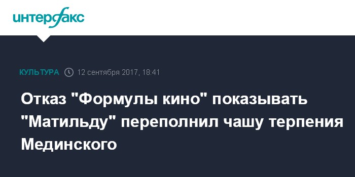 Отказ "Формулы кино" показывать "Матильду" переполнил чашу терпения Мединского