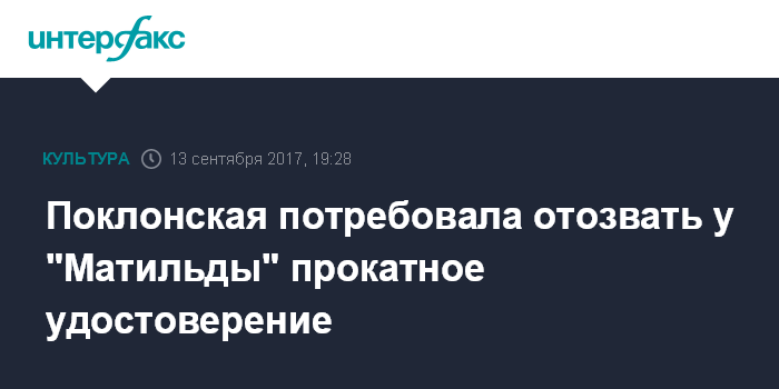 "Исходя из того, что прокатное удостоверение было выдано слишком быстро - в течение суток, наверное, поэтому Общественному совету не удалось посмотреть этот фильм. Я думаю, что этот вопрос не является невозвратным. К нему можно возвратиться. Есть процедура отзыва прокатного удостоверения", - сказала Поклонская журналистам в среду.