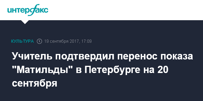 Учитель подтвердил перенос показа "Матильды" в Петербурге на 20 сентября