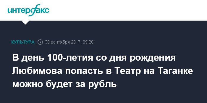 В день 100-летия со дня рождения Любимова попасть в Театр на Таганке можно будет за рубль