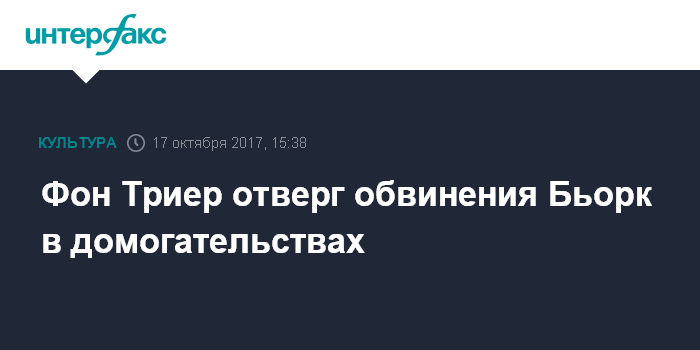 В воскресенье 15 октября Бьорк написала в фейсбуке, что в связи со скандалом вокруг голливудского продюсера Харви Вайнштейна, которого обвиняют в домогательствах, она почувствовала, что может рассказать о собственном опыте. Она прямо не обвинила фон Триера, но уточнила, что подверглась приставаниям со стороны датского режиссера. Фон Триер - единственный режиссер-датчанин, с которым ей приходилось работать.