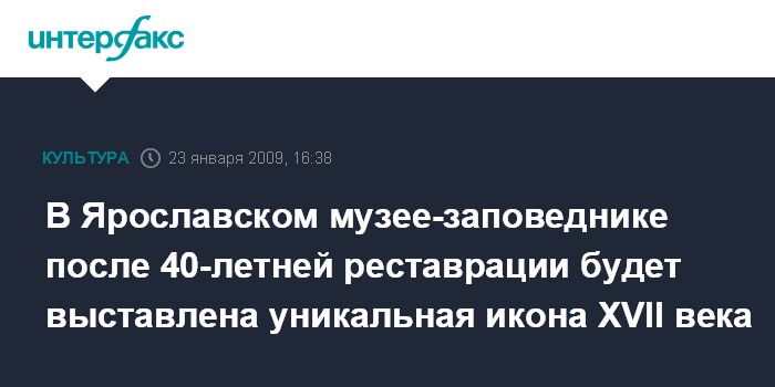 Москва. 23 января. INTERFAX.RU - В Ярославском музее-заповеднике только на один день после 40-летней реставрации будет выставлена уникальная икона XVII века "Богоматерь на престоле", сообщили "Интерфаксу" в пятницу в Ярославском государственном историко-архитектурном и художественном музее-заповеднике.