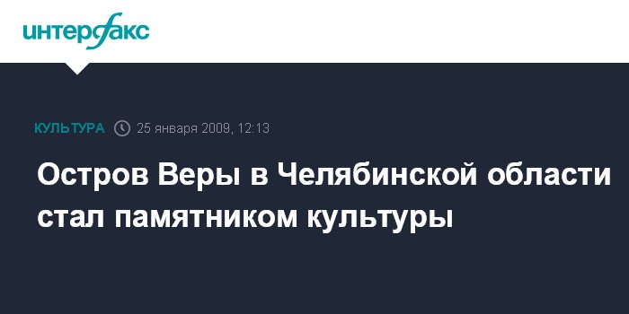 Остров Веры в Челябинской области стал памятником культуры