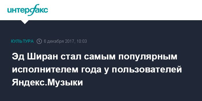 Эд Ширан стал самым популярным исполнителем года у пользователей Яндекс.Музыки
