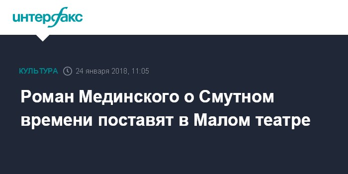 Москва. 24 января. INTERFAX.RU - Малый театр намерен поставить спектакль по роману министра культуры Владимира Мединского "Стена", сообщил "Интерфаксу" худрук театра Юрий Соломин.