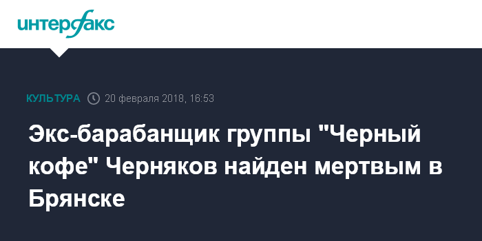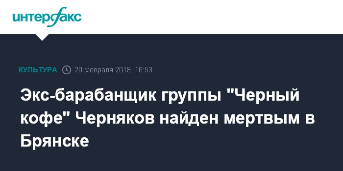 Экс-барабанщик группы "Черный кофе" Черняков найден мертвым в Брянске