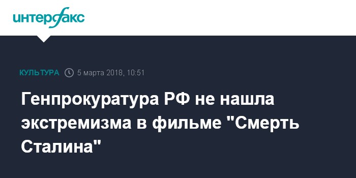 Генпрокуратура РФ не нашла экстремизма в фильме "Смерть Сталина"