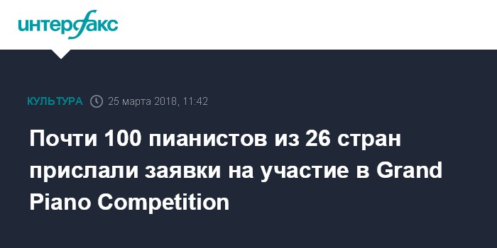 Москва. 25 марта. INTERFAX.RU - На II Международный конкурс Grand Piano Competition поступило 98 заявок из 26 стран мира.