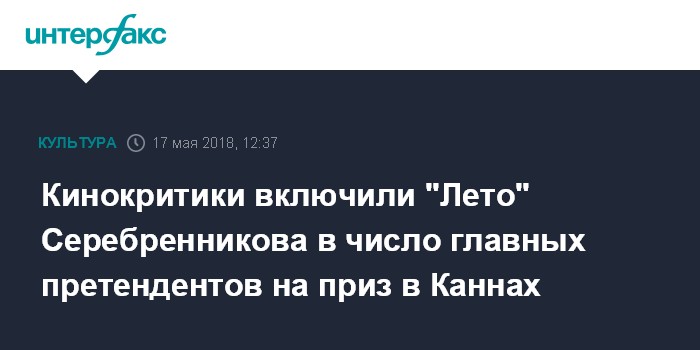 Кинокритики включили "Лето" Серебренникова в число главных претендентов на приз в Каннах