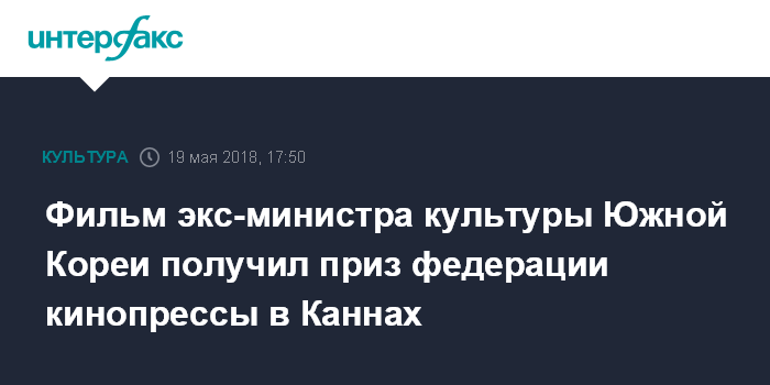 Фильм экс-министра культуры Южной Кореи получил приз федерации кинопрессы в Каннах