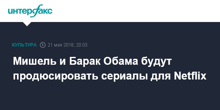 Москва. 21 мая. INTERFAX.RU - Бывший президент США Барак Обама и его супруга Мишель будут продюсировать фильмы и сериалы для Netflix.
