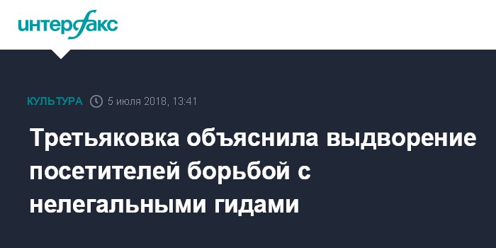 Москва. 5 июля. INTERFAX.RU - Пресс-служба Третьяковской галереи заявила, что музей не запрещает посетителям обсуждать выставки в залах, но с середины мая внимательно отслеживает нелегальных гидов и просит их удалиться, сообщили в пресс-службе галереи.