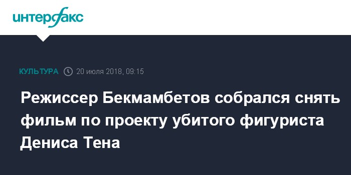 Москва. 20 июля. INTERFAX.RU - Российский режиссер и продюсер Тимур Бекмамбетов хочет реализовать проект, который задумывал убитый в четверг казахстанский фигурист, бронзовый медалист Олимпийских игр-2014 Денис Тен, сообщило посольство Казахстана в РФ.