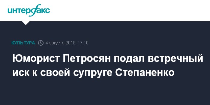 Москва. 4 августа. INTERFAX.RU - Юморист Евгений Петросян подал встречный иск к своей супруге Елене Степаненко в рамках бракоразводного процесса, сообщил "Интерфаксу" в субботу адвокат артиста Сергей Жорин.