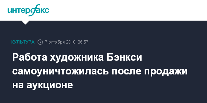 Москва. 7 октября. INTERFAX.RU - Художник Бэнкси опубликовал видео, на котором его картина отправляется в измельчитель сразу после объявления о продаже на аукционе "Сотбис", сообщила BBC News.