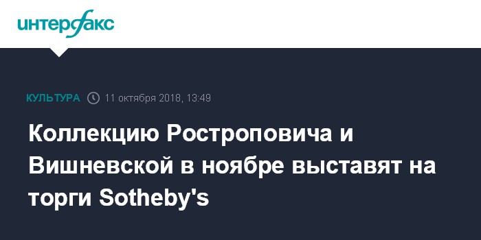 "В 2007 году Sotheby's должен был выставить на торги коллекцию русского искусства Ростроповича и Вишневской. Однако аукцион был отменен после того, как была достигнута договоренность о продаже всей коллекции по частному соглашению", - пояснили в пресс-службе Sotheby's.
