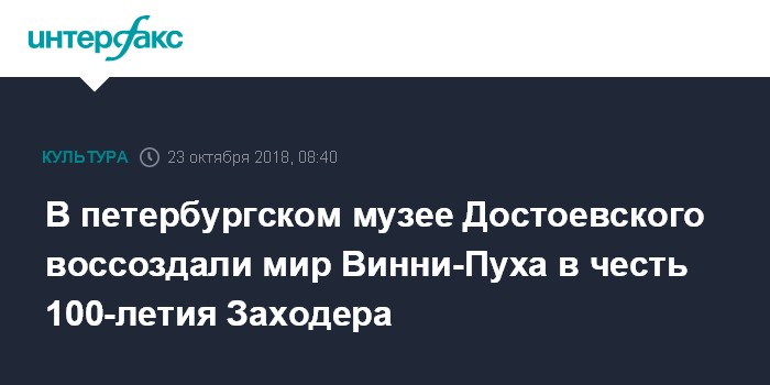В петербургском музее Достоевского воссоздали мир Винни-Пуха в честь 100-летия Заходера