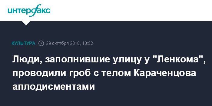 Москва. 29 октября. INTERFAX.RU - В театре "Ленком" завершилась церемония прощания с народным артистом РСФСР Николаем Караченцовым, ушедшим из жизни 26 октября.