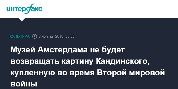 Москва. 2 ноября. INTERFAX.RU - Наследники еврейского коллекционера Эмануэля Левенштейна получили в Нидерландах отказ на свой запрос о возвращении картины русского художника Василия Кандинского, сообщили в пятницу европейские СМИ.