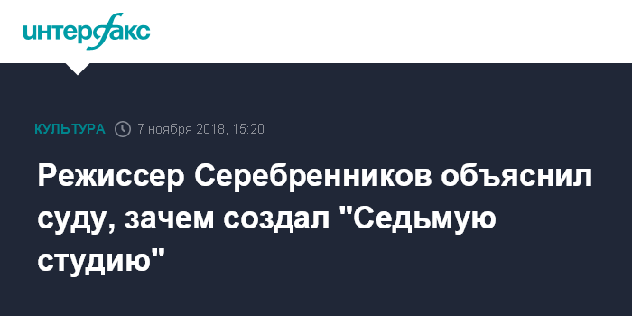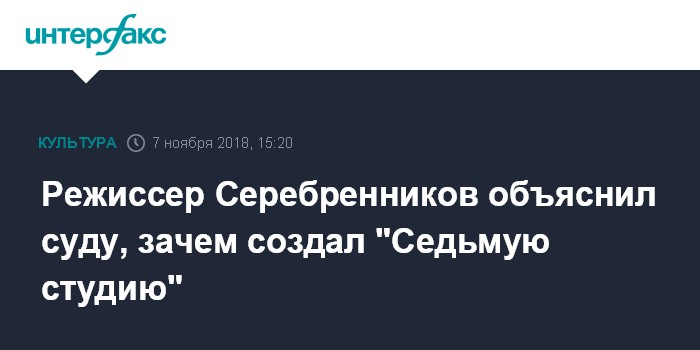 Москва. 7 ноября. INTERFAX.RU - Художественный руководитель "Гоголь-центра", режиссер Кирилл Серебренников рассказал в суде, что "Седьмая студия" была создана в виде автономной некоммерческой организации по предложению министерства культуры, передает корреспондент "Интерфакса".