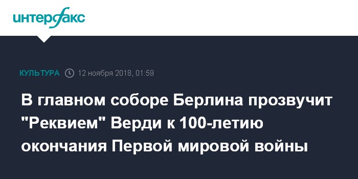 В главном соборе Берлина прозвучит "Реквием" Верди к 100-летию окончания Первой мировой войны