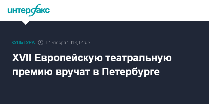 XVII Европейскую театральную премию вручат в Петербурге