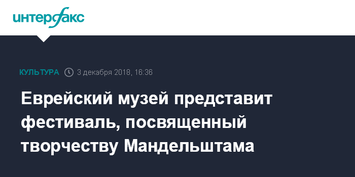 Москва. 3 декабря. INTERFAX.RU - К 80-летию со дня смерти Осипа Мандельштама Еврейский музей и центр толерантности 14 декабря представит фестиваль, посвященный жизни и творчеству поэта.