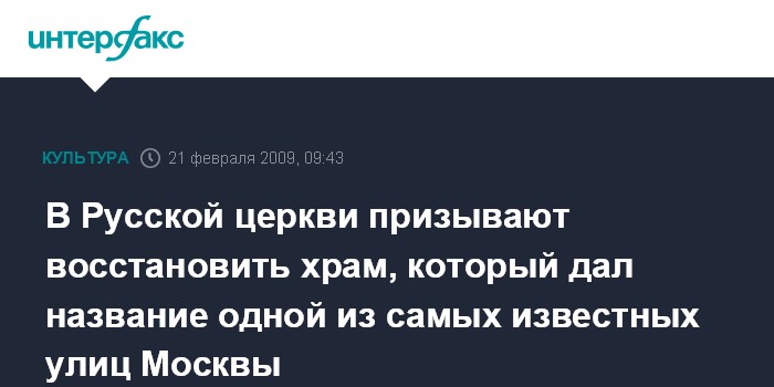 В Русской церкви призывают восстановить храм, который дал название одной из самых известных улиц Москвы