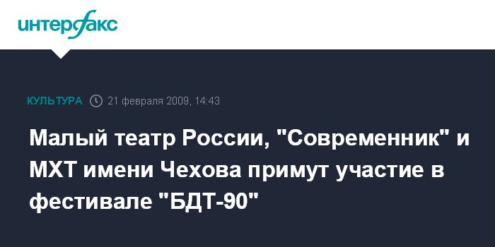 Малый театр России, "Современник" и МХТ имени Чехова примут участие в фестивале "БДТ-90"