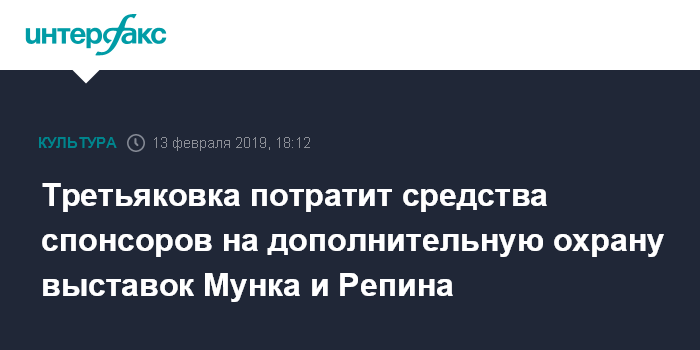 Третьяковка потратит средства спонсоров на дополнительную охрану выставок Мунка и Репина