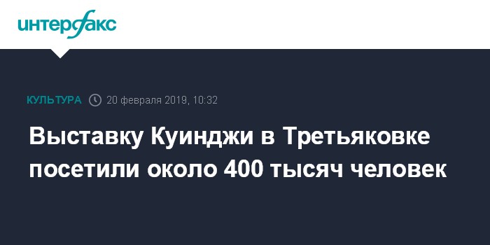 Москва. 20 февраля. INTERFAX.RU - Выставку картин Архипа Куинджи в Третьяковской галерее за четыре месяца посетили почти 400 тысяч человек.