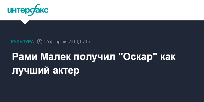 Москва. 25 февраля. INTERFAX.RU - Рами Малек получил "Оскар" как лучший актер за роль Фредди Меркьюри в фильме "Богемская рапсодия".