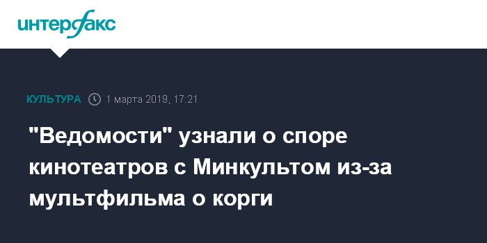 "Ведомости" узнали о споре кинотеатров с Минкультом из-за мультфильма о корги