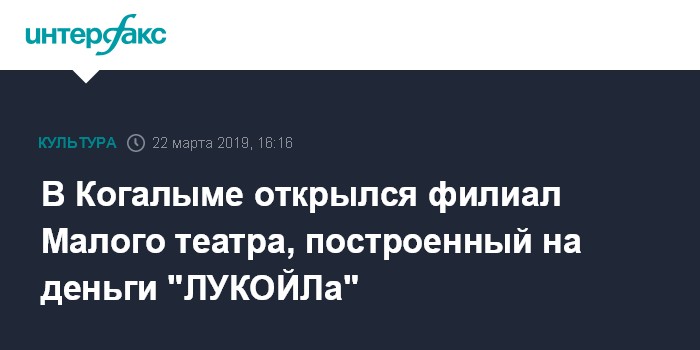 В Когалыме открылся филиал Малого театра, построенный на деньги "ЛУКОЙЛа"