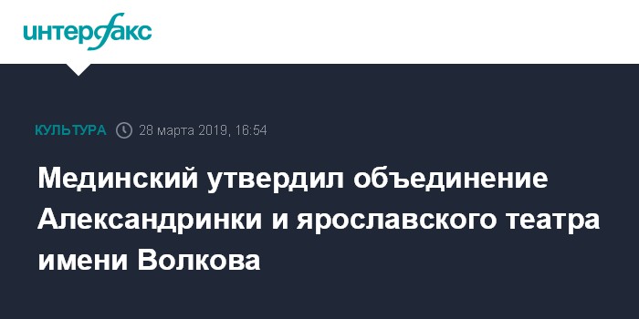 О том, что Александринский театр и ярославский театр имени Волкова объединяются в единый театральный комплекс - "Первый национальный театр России (Академический Александринский театр - Академический театр имени Волкова)", ранее говорил сам Мединский.