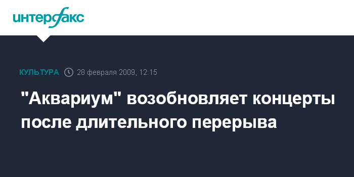 Москва. 28 февраля. INTERFAX.RU - Популярная рок-группа "Аквариум" после продолжительного перерыва приступает к концертной деятельности, говорится в сообщении на официальном сайте коллектива.