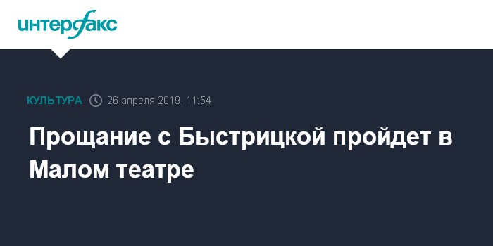 Москва. 26 апреля. INTERFAX.RU - Прощание с Элиной Быстрицкой состоится в Малом театре, оно намечено на 29 апреля, сообщили "Интерфаксу" в пятницу в пресс-службе театра.