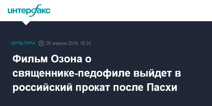 Москва. 26 апреля. INTERFAX.RU - Новый фильм Франсуа Озона "По воле божьей" про совращение детей католическими священниками выйдет в российский прокат 29 апреля, сообщили в Минкультуры.