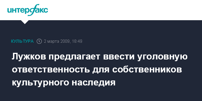 Лужков предлагает ввести уголовную ответственность для собственников культурного наследия