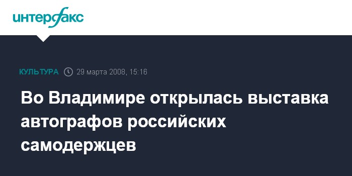 Владимир. 29 марта. ИНТЕРФАКС-ЦЕНТР - Во Владимиро-Суздальском музее-заповеднике открылась выставка "Автографы российских императоров и императриц", сообщила "Интерфаксу" пресс-секретарь музея Ирина Кузнецова.