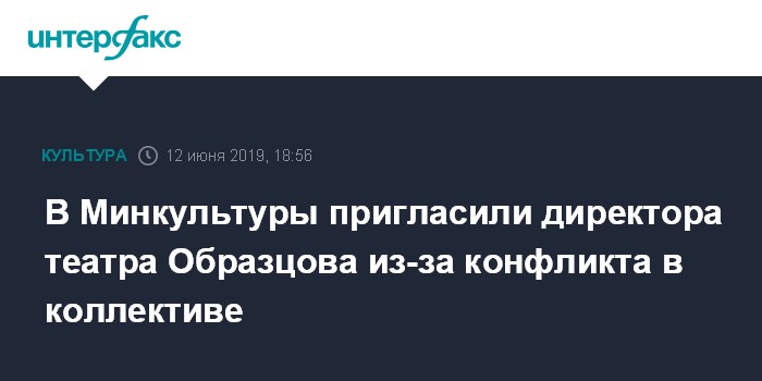 Москва. 12 июня. INTERFAX.RU - Минкультуры России разберется в конфликтной ситуации между коллективом и новым руководством государственного центрального театра кукол имени С.В. Образцова, сообщила "Интерфаксу" в среду режиссер-постановщик, внучка Сергея Образцова Екатерина Образцова.