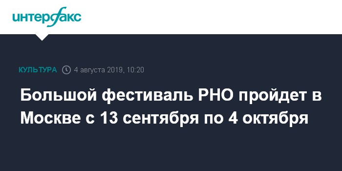 Большой фестиваль РНО пройдет в Москве с 13 сентября по 4 октября