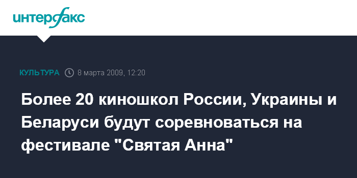 Москва. 8 марта. INTERFAX.RU - ХVI Открытый российский фестиваль студенческих и дебютных фильмов "Святая Анна" пройдет в Москве с 13 по 19 марта.