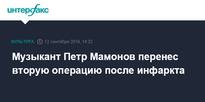 Москва. 12 сентября. INTERFAX.RU - Музыканта и актера Петра Мамонова успешно прооперировали в Москве, сообщила "Интерфаксу" его жена Ольга Мамонова.