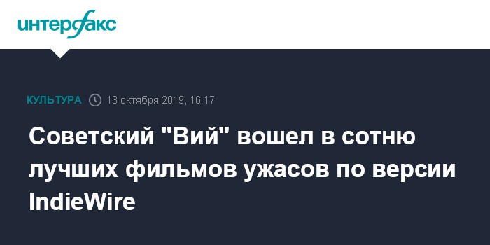 Советский "Вий" вошел в сотню лучших фильмов ужасов по версии IndieWire